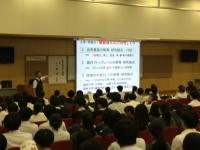 本校では夏季休業中に進学希望をしている大学のオープンキャンパスに低学年のうちに参加するよう勧めていますが、先に述べたような動向を踏まえ、初めての試みとして受験・進路希望先が首都圏である生徒のために、人気校の1つである早稲田大学の入試担当の方に来校して頂き直接お話をして頂くという企画をお願いし、快く受けて頂きました。