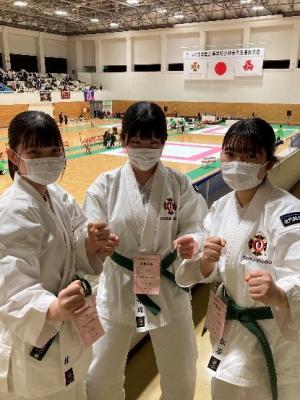 女子規定単独演武に12H松谷向日葵さん、女子規定組演武に13H中岡凛子さんと16H林穂乃花さんが県代表選手として出場しました。