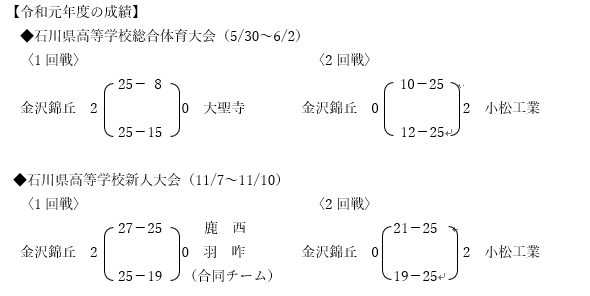 遅くなりましたが、男子バレーボール部 令和元年度の結果です。