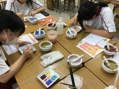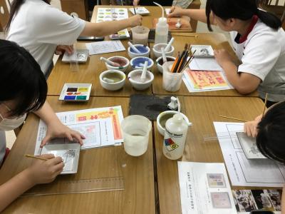 9月5日、美術部では、石川県立九谷焼技術研究所の方に来ていただき、九谷焼の絵付け体験をしました。