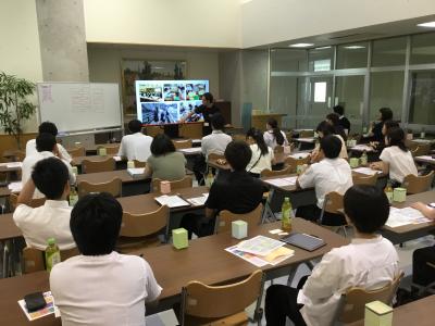 1年生は4月から探究学習の一環として大学の学部・学科について調べてきましたが、本日はその集大成として、大学生から実際の大学生活や学問の魅力について学びました。