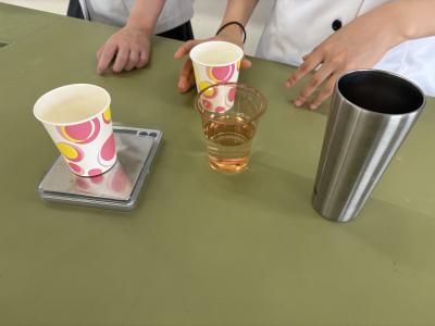 カップの素材によって結露のしやすさが変わるのかを調べる班もありました。理科の先生に協力していただきながら「とりあえずやってみる」ことから始め、対照実験にするために水温やカップの事前状態を調整する必要があることに気づいていきました。試行錯誤を通して、実際にやってみてこそ得られる学びを重ねています。
