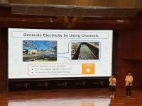 午後からは引き続き世界の水問題に関するプレゼンテーションが続きました。錦丘の発表はインドネシアの高校生の発表の後でした。たくさんのインドネシア人に注目されながらの発表でしたが、これまで研究してきた小水力発電に関する研究を立派に発表していました。その後質疑応答の時間がありましたが、①自分たちの研究について、周囲の人をどのように巻き込んでいくか、②政府や自治体にどのようなことを求めたいかの2点について、的確に応答できていました。一日で20以上のスピーチやプレゼンテーションを聞きましたが、本校の発表も決して引けを取らない内容だったと思います。