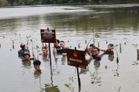 ジャカルタにある自然観光公園では、様々なアクティビティが体験できますが、水に関わる内容としてマングローブの植樹を行いました。衣服を着たまま湿地帯に入り、苗木を植える体験はなかなか刺激的です。足がつかないため、水中にある竹1本を頼りに泥水の中を泳ぐことになり、その体験は想像以上にスリリングで、忘れられない思い出となりました。