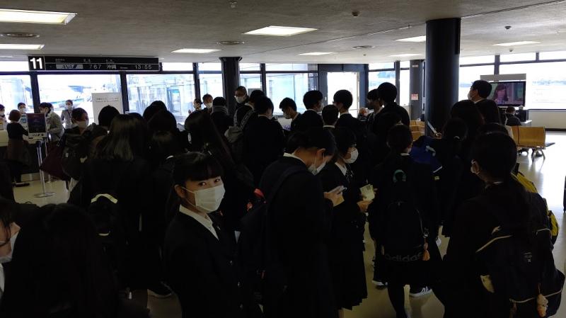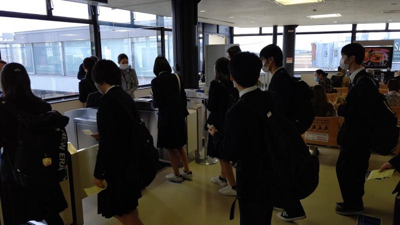 一団は一路伊丹空港に向けて、それぞれJALとANAに分かれて搭乗します。沖縄とはこれでお別れです!生徒へのインタビュー結果は次の更新でお伝えします!