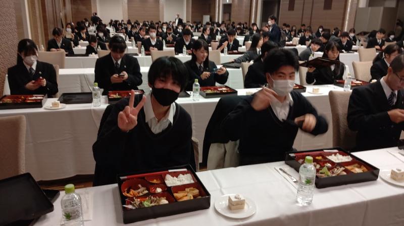 食事の最後には修学旅行期間中に誕生日を迎えた生徒をサプライズでお祝いしました。生徒全員でお祝いしている様子にとても一体感があり、修学旅行最後のイベントは大成功に終わりました。