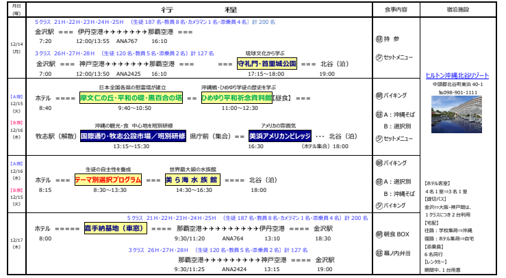 おはようございます。本日は修学旅行最終日です。朝食後、A隊とB隊に分かれて、一路那覇空港を目指します。名残惜しいですが、沖縄とはお別れです。最後の最後まで沖縄の空気を楽しみましょう!