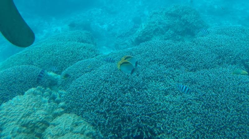 マリン体験、シュノーケリングが一番楽しかったです。初めて体験したのですが、お魚さんやサンゴ礁など海の生き物がとてもきれいでした。海の色もとても印象に残りました。エメラルドグリーンでとても綺麗でした。【理系女子生徒】