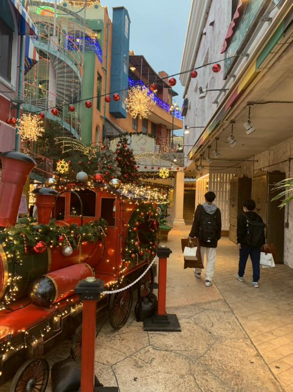 本日の夕食はBBQビュッフェレストランとと和洋中ビュッフェの2つから選択して自由に食べられる豪華ディナーです。BBQでは、イルミネーションをバックにアメリカンなBBQを楽しみました。和洋中ビュッフェでは、たくさんの沖縄料理を含む何十種類もある様々な料理からデザートまで楽しみました。どちらかというとBBQの方が人気だったようですが、生徒たちはここまでの疲れが嘘のように、豪華なディナーを思う存分楽しんでいました。