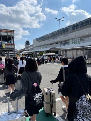 A隊B隊ともに無事伊丹空港に到着しました。飛行機が初めての生徒も多数いましたが、全員が無事保安検査場を通過しました。これから搭乗し、いよいよ沖縄に向けて離陸します。