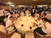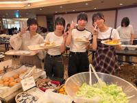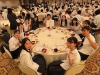 ホテルに到着した生徒たちは、夕食会場に集まりました。和洋中のバイキング形式で、好きな料理を選びながら楽しいひとときを過ごしました。沖縄そばや、沖縄の食材を使ったスウィーツが沢山あり、ご当地グルメも味わえました。(全員ではありませんが、今回は1H・3H・5H・6Hの円卓の様子をお載せします)