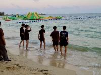 2日目が始まりました。早朝満月の光を浴びて朝練習をしている運動部員や、砂浜で写真を撮っている生徒がいました。リゾートホテルを満喫しています。