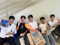 ホテルから1時間半くらい移動して、沖縄美ら海水族館を訪れました。展示されている生き物は石川県のものとは異なるトロピカルな様子に驚いていました。イルカショーの見学、お土産の購入、アイスを食べるなどそれぞれが満喫している様子が見られました。