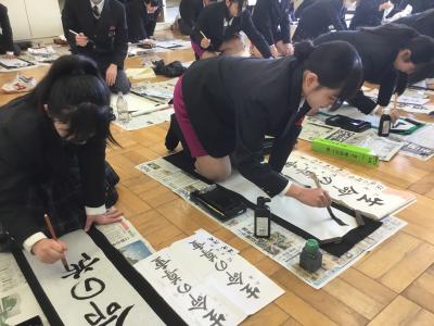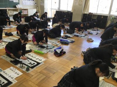 今日から3学期が始まりました。5・6限目に書き初め大会が行われました。凛とした静けさの中、集中して取り組む姿はとても素敵でした。
