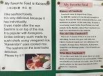2年生のフロアに、「English Writing Report」が掲示されています。テーマは「オリンピックにやってくる海外の人たちに向けて、自分の好きな食べ物を紹介する」です。クロームブックを使って作成しました。その食べ物が好きな理由や歴史なども盛り込んだ力作が並んでいます。