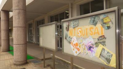 生徒玄関前にも、これまでの二水祭の様子を掲示中。