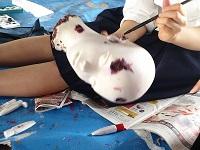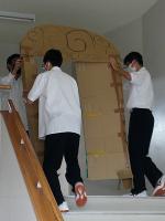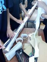 教室での催し物の飾り付け、作成中。
