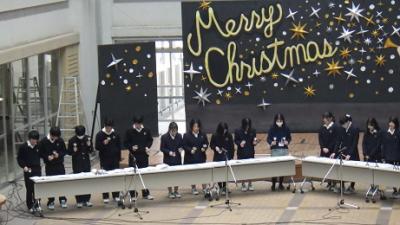 20日、吹奏楽部部によるクリスマスソング演奏♪