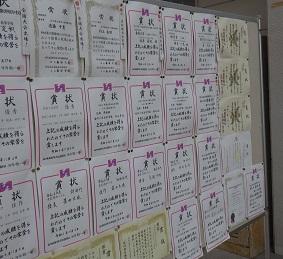 それぞれの部活動の入賞(賞状のコピー)を校内1階ガレリアに展示しました。