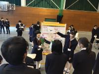・生徒さんが堂々とプレゼンされており感動しました。ポスターも写真やデータが適切に使われており分かりやすかったです。調べたいデータを得るためにはどのような調査をすればよいかを丁寧に考えた班や、自分たちの提案を実現させることはできなかったけど、社会のルールや制限を知り、その中で最善を探すことに奮闘した班の発表が印象に残りました。