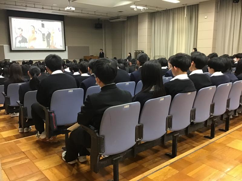 生徒からは、講話を通じて「知らなかったことを学べた」「自分たちの考えも変えていく必要がある」「体験談を聞く機会はなかったのでとてもいい機会だった」などの感想があり、性の多様性について正しい知識を深めることができました。また、個々の違いを尊重することの重要性を学び、社会での共生に向けて一歩踏み出す貴重な時間となりました。