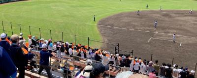 事前に生徒会執行部による呼びかけもあって、この日は生徒・職員あわせて100名以上が球場で応援!