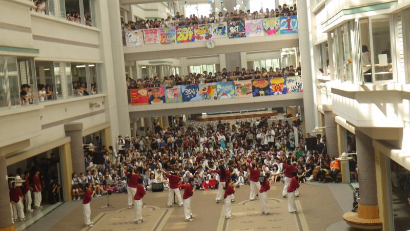 校舎見学の際、案内の生徒がガレリアでは「広くてきれいですが、冬はとても寒いです」、パルでは「定食はすごくおいしいけれど少し量が少ない」などアドリブ説明が入り、とても楽しそうに聞いていました。中学生からガレリアは「すごく広い」、「きれい」などの声が聞かれました。