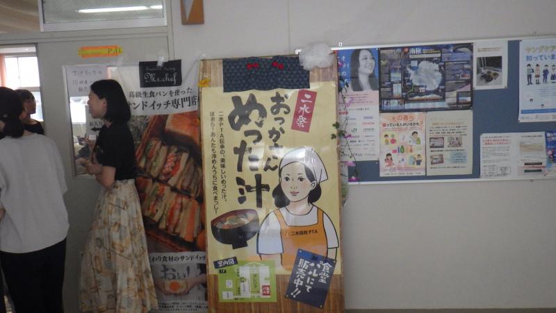 8月23日(金)、24日(土)に第76回二水祭が開催され、PTAは「おっかさん&おっさん」食堂として、二水伝統の「愛情たっぷりめった汁」やおにぎり、サンドウィッチの販売をしました。