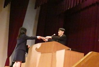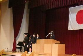 代表生徒が宣誓を行いました。河内校長の式辞、和田PTA会長、西野同窓会長の祝辞の後、本校合唱