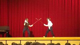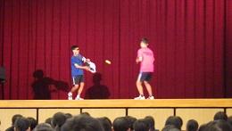 華麗なる技を披露するフェンシング部 マイクとラケットの二刀流(男子テニス部)