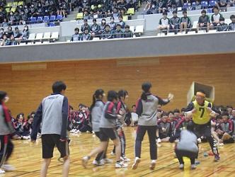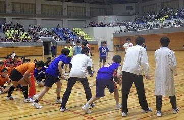 必死で玉を入れられまいとする本校教諭と懸命に玉を入れようとする生徒たち
