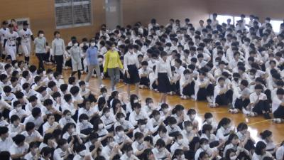 全校生徒も一緒になって手拍子をして盛り上げていました。