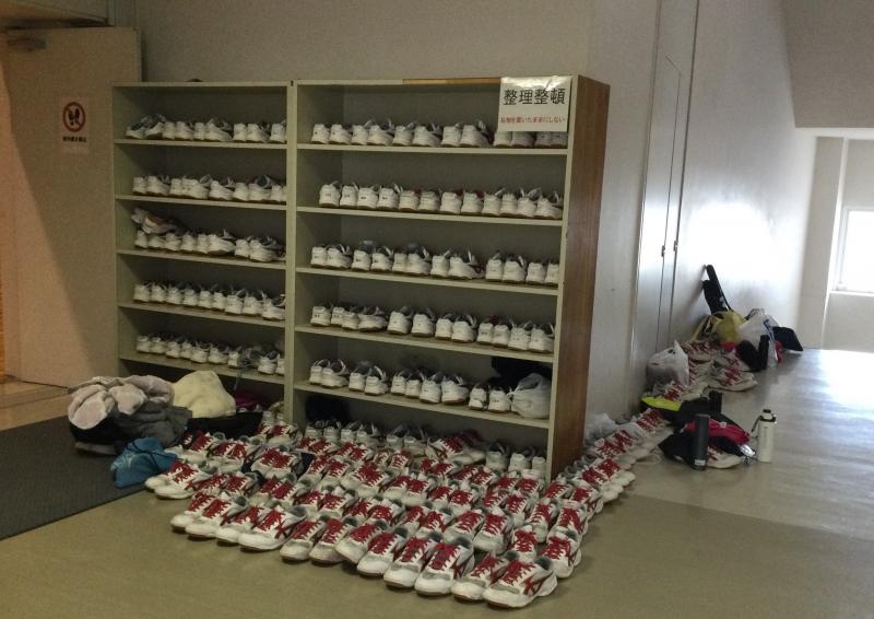 「今日はたくさんの人が集まるため、シューズはきれいに並べるように」と前日に生徒に連絡したところ、当日のシューズ置き場は下のような状態でした。