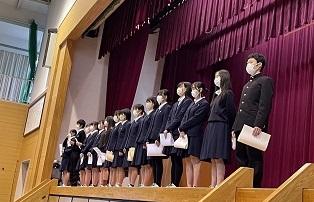 修了式では、1年を振り返り学校長より訓話があり、テニスプレーヤーの国枝慎吾さんのお話から、より良き自分を目指して努力してほしいというお話がありました。
