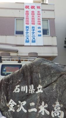 ~この出場を祝して、正面玄関に懸垂幕を掲示中。各部活動の活躍が楽しみです~