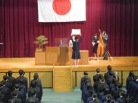 続いて、在校生を代表して山口孟海生徒会長から「伝統を受け継ぎます」との送辞に続き、卒業生の宮前有里さんが、「コロナ禍での高校生活でも、私たちは私たちなりに高校生活を謳歌したのです。」「新たな未来に向かって今スタートラインに立ち、明るい未来に向かって走り出しましょう。」と力強く、周囲への感謝の言葉とともに答辞を読み上げました。