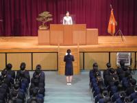 三藤校長は「皆さんは制約の多い厳しい環境の中でも秩序を守り、お互いを気遣い、誠実に高校を過ごしました。できることの中から最大限の楽しさを引き出し、ひとつひとつ思い出を紡いでいったのです。なんと辛抱強く、理性的であることか。よく頑張って今日の日を迎えました。」「皆さん、一人ひとりにしかない輝きを忘れず、決して自分を過小評価せず、力強く、しなやかに人生を歩んでいってください。」と餞の言葉が贈られました。