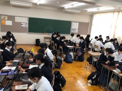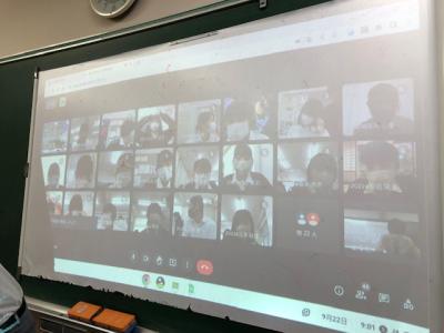 9月22日(木)本校の202Hおよび205Hの生徒が、台湾の國立新豊高級中学の生徒とオンラインでの交流授業を実施しました。新豊高中校は、本校がコロナ禍以前には修学旅行で訪れ、交流を重ねていた高校です。最初に行われたセレモニーでは、新豊高中校の校長先生から日本語のあいさつがあり、歓迎ムードで包まれました。