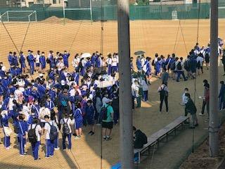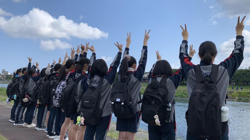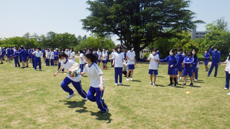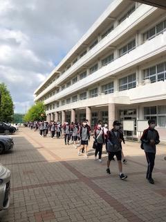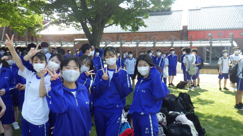 1学期中間試験明けの5月23日(月)、全校そろって遠足に出かけました。2年生は現地集合でしたが、1・3年生は学校のグランドに集合し、それぞれの目的地に向け出発していきました。生徒たちの楽しそうな話し声が青空に反響しているようでした。2年生はたっぷりとレクを楽しむプログラムでしたが、会場にはPTAの方々の応援もあり、おそろいのTシャツが輝いていました。(ご協力ありがとうございます。)