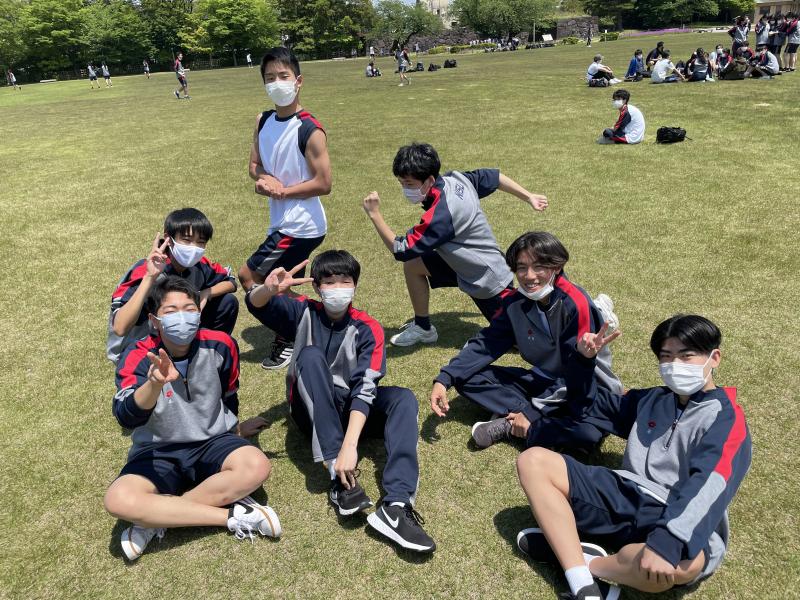 1年生は金沢城公園まで歩き、レクリエーションをし、親睦を深めました。