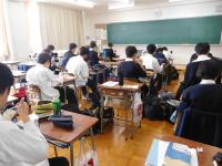 1年 6・7限 視聴覚室にて、人数を半分にして、行いました。