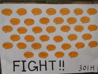 総体総文・県予選に参加する生徒に向けて、全校生徒が一人一言ずつ、応援の言葉を寄せました。クラスごとにガレリアに貼り出してあります。