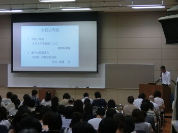 8月24日(土)10時30分より,本校視聴覚室にて,3年生保護者進路説明会を行いました。橋場進路指導課長より,令和2年度大学入試センター試験の出願についてお話させていただきました。