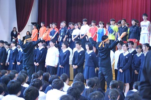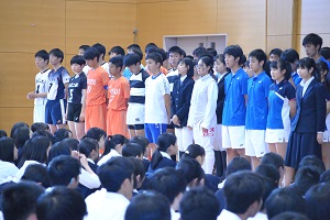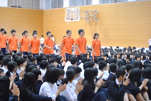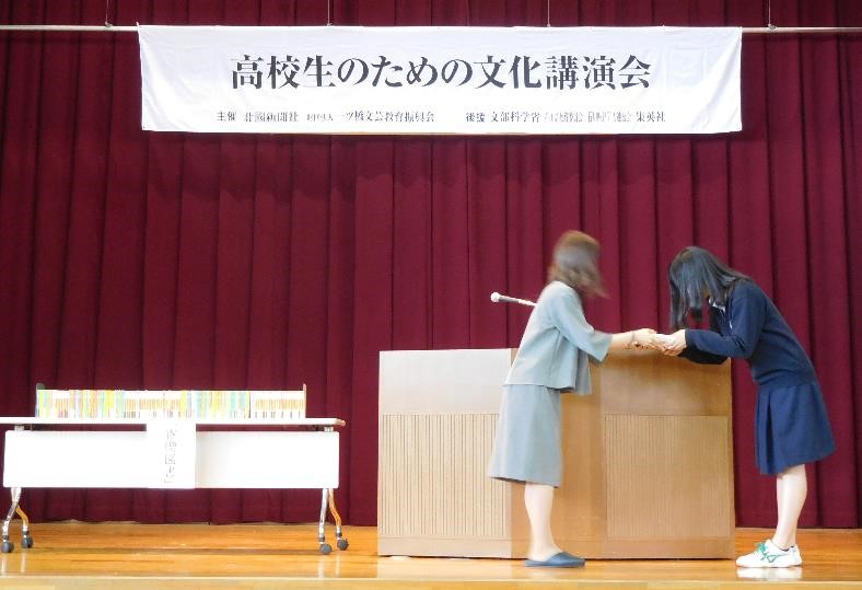 講演後、本校の代表生徒に集英社様から「集英社文庫図書特選100冊」が贈られました。