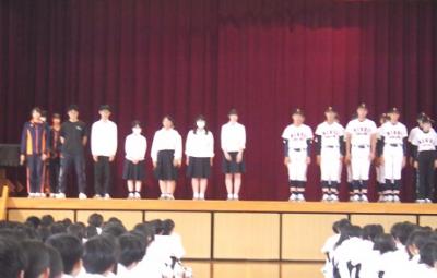 その後、全国大会に出場する部活動ならびに野球部の壮行式が行なわれました。