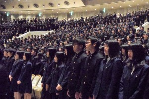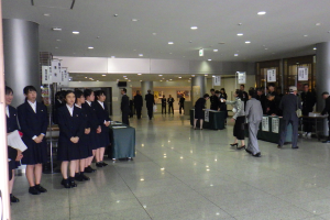 校歌を歌う在校生                 受付の様子