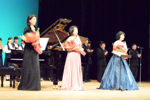 本校合唱部との演奏          右から小泉さん、辻田さん、米谷さん