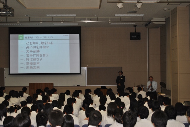 生徒たちは、熱い言葉に真剣に聞き入っていました。上記に紹介した感想のように、ここで芽生えた「自分にもできるかも」という気持ちを、これから職員全員で育てていこうと考えています。