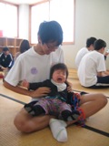 初めは戸惑っていた生徒も、お母様方から子育ての喜びや苦労話を聞いたり、乳幼児の笑顔や楽しく遊んでいる様子をみるうちに優しい表情になっていったのが印象的でした。生徒が思っていた以上に子どもにとってお母さんの存在が大きいということ、自分もこのように愛情たっぷりに育ててもらって両親に改めて感謝しているとの感想が多く見られました。