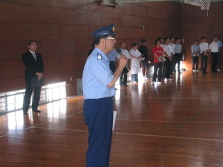 校長先生からは「避難指示が常に正しいとは限らないから、何が必要かを判断して適切な行動を取ることが大切である。」「災害はいつ、どこで起こるか分からないが、まずは身の安全を確保し、他の人を助けられる状況の時は進んで助ける。」また、消防署の方からは「避難の際は、押さない・かけない・しゃべらない・戻らない、を守って欲しい」という講評をいただきました。